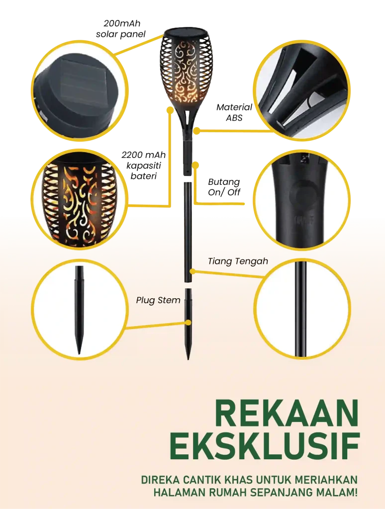 Lampu boleh menyala sehingga 7-8 jam bergantung kepada cahaya matahari yang diterima pada siang hari.